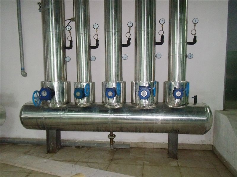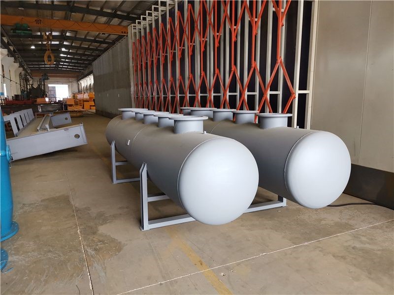 集分水器是由集水器和分水器組合而成的水流量分配和會(huì)集裝置。分水器是將一路進(jìn)水通過(guò)一個(gè)容器分為幾路輸出的設(shè)備,而集水器則是將多路進(jìn)水通過(guò)一個(gè)容器一路輸出的設(shè)備。其管理若干的支路管道,分別包括回水支路和供水支路,其較大多為DN350-DN1500不等,用碳鋼或不銹鋼板制作,屬于壓力容器類專門制造,其需要安裝壓力表溫度計(jì)。它一方面將主干管的水按需要進(jìn)行流量分配,保證各區(qū)域分支環(huán)路的流量滿足負(fù)荷需要,同時(shí)還要將各分支回路的水流匯集,并且輸入回水主干管中,實(shí)現(xiàn)循環(huán)運(yùn)行。其回水再利用,可達(dá)到節(jié)能的效果,可以同時(shí)滿足供熱與制冷的需要,其應(yīng)用于鍋爐、中央空調(diào)、工業(yè)循環(huán)冷卻水系統(tǒng)、熱水系統(tǒng)。